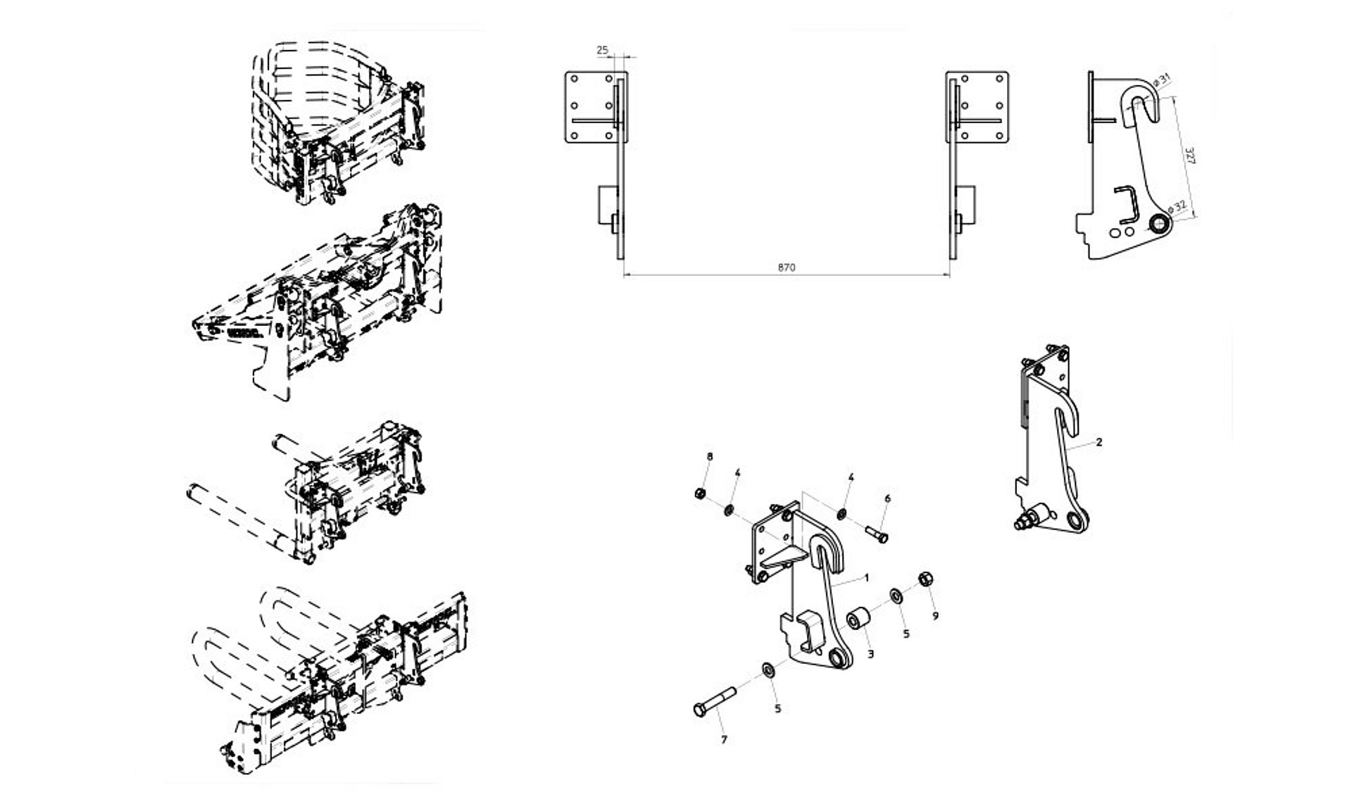 Rundballen Transport gewickelte und ungewickelte Ballen mechanisch verstellbare Gabelrohre