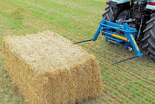 The BTGHY hydraulic bale spear has been designed to transport and stack wrapped and unwrapped round bales with a diameter of 0.90 - 1.80 m. Since the fork pipes are actuated hydraulically and rotatable thanks to integrated ball bearings, they ensure that the work flow is particularly gentle and damage-free.