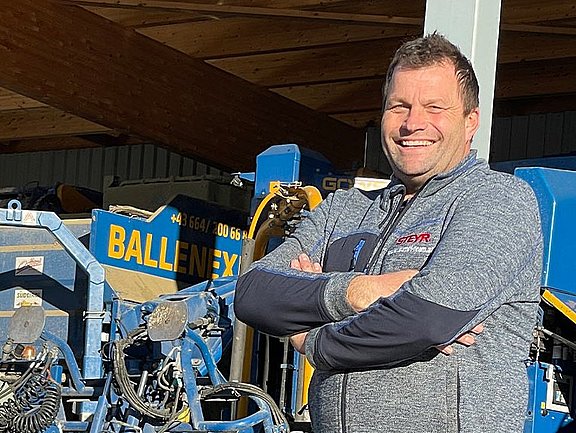 Il y a 35 ans, le quinquagénaire s’est lancé dans la vente directe de lait dans sa ferme Stadtlerhof. Il a été l’un des premiers en Autriche à pasteuriser le lait. En 1993, il a commencé à travailler comme entrepreneur de travaux agricoles, ce qui lui laissait de moins en moins de temps pour s’occuper de la vente à la ferme. Pour Hans Gumpitsch, l’intérêt de son travail réside dans le fait qu’il répond à des besoins qui ne font pas partie du quotidien, qu’il accomplit des tâches et relève des défis qui ne sont pas habituels et qu’il travaille avec une équipe qui est tout aussi unique. « C’est pourquoi nous disons toujours que nous sommes spéciaux ! Nous formons une bonne équipe qui se réjouit de faire son travail. Personne ne regarde l’heure pour savoir si la journée est bientôt terminée. L’objectif commun est de faire son travail. Nous sommes des prestataires de services et nous y mettons tout notre cœur » déclare Hans Gumpitsch avec fierté.