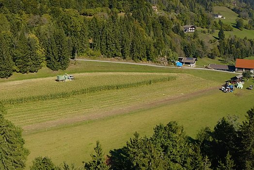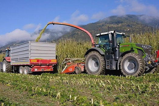 Depuis 7 ans, le responsable a élargi son offre et propose le pressage de balles de maïs. Il a repéré l’énorme potentiel du marché, surtout pour ses agriculteurs qui pratiquent une agriculture à petite échelle. Le stockage sous forme de balles constitue la solution la plus adaptée pour ces agriculteurs. Nombre d’entre eux ont des balles d’herbe ensilée. La même technique leur permet de transporter les balles de maïs, de les ouvrir dans l’étable et de les introduire dans l’alimentation. Le VARIO-Master convient parfaitement aux besoins des agriculteurs. Le combiné presse-enrubanneuse de la maison GÖWEIL permet d’enrubanner des balles de différentes tailles. « Certains de nos clients sont de petites exploitations, qui pratiquent par exemple l’élevage d’ovins et qui ont donc besoin de balles de maïs de petite taille. D’autres sont des exploitations qui ont besoin d’une ration de 1 400 kilos par jour, soit l’équivalent d’une grosse balle par jour », explique Hans Gumpitsch. Avec six machines GÖWEIL, Gumpi-Team s’occupe désormais de clients dans un rayon de plus de 200 kilomètres autour de la capitale du district du Tyrol oriental.
