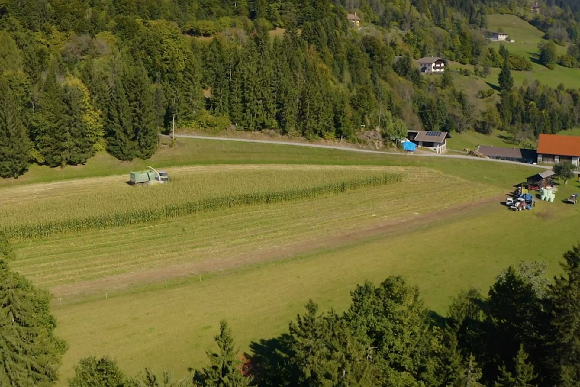 Chez Gumpi-Team, la récolte du maïs correspond à la période la plus stressante de toute l’année et dure au maximum huit semaines. En 2021, la culture plus tardive du printemps et les conditions météorologiques de l’été ont posé un défi particulier à Hans Gumpitsch. Cette année-là, l’équipe a dû traiter la totalité de la récolte de maïs chez ses clients en l’espace de 10 jours. De plus, elle a dû ensiler en aussi peu de temps un plus grand nombre de balles que celui réalisé il y a trois ans en une saison entière. Tous travaillaient d’arrache-pied, 24 heures sur 24. Pour cela, il faut faire preuve d’une grande disponibilité, mais aussi disposer de machines puissantes.