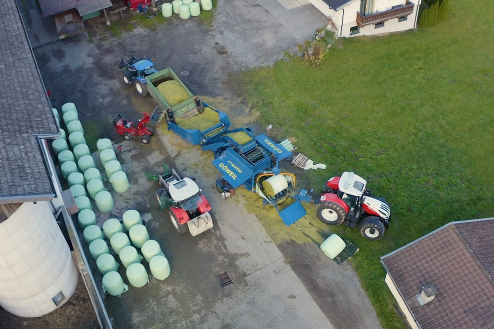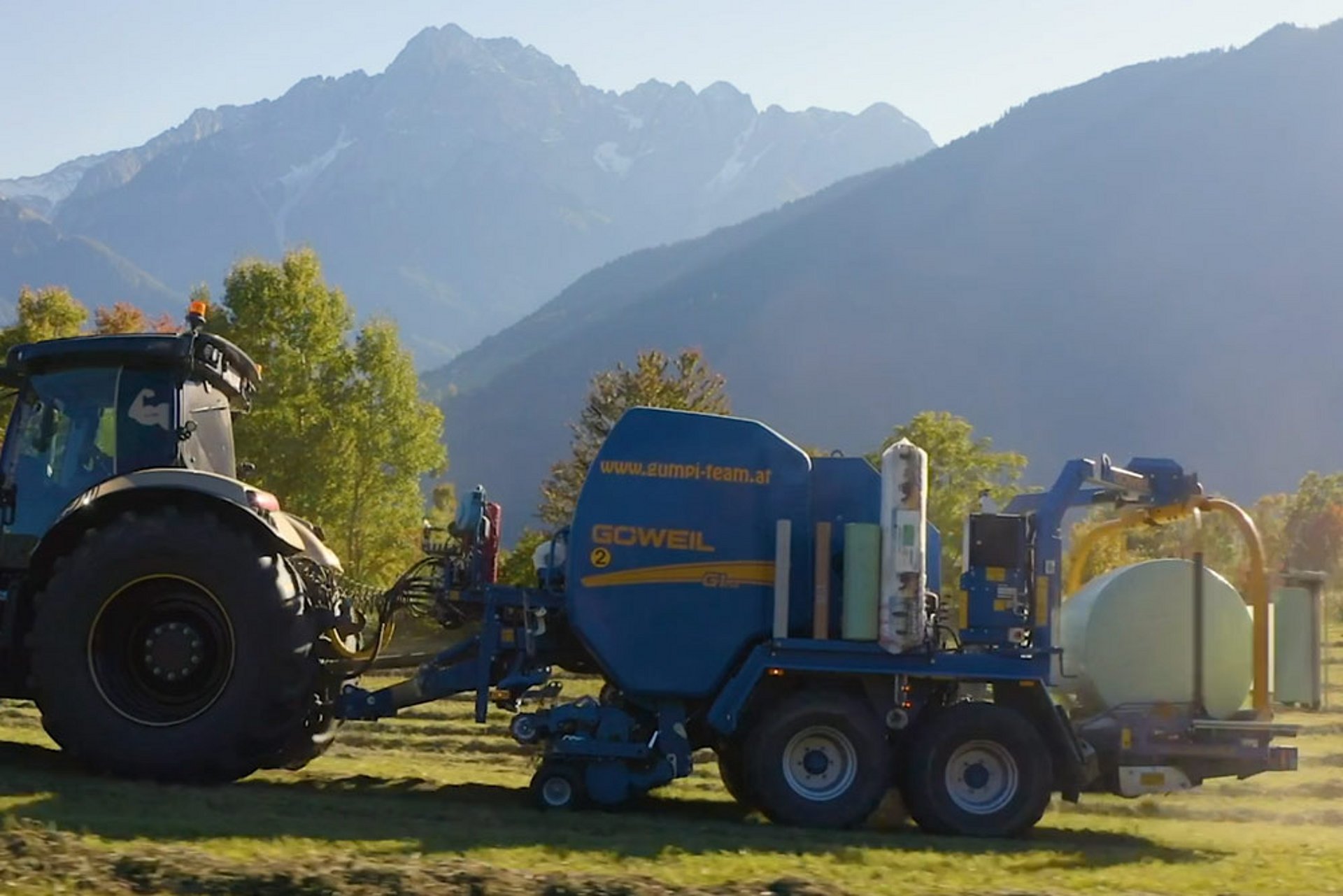 Depuis 7 ans, le responsable a élargi son offre et propose le pressage de balles de maïs. Il a repéré l’énorme potentiel du marché, surtout pour ses agriculteurs qui pratiquent une agriculture à petite échelle. Le stockage sous forme de balles constitue la solution la plus adaptée pour ces agriculteurs. Nombre d’entre eux ont des balles d’herbe ensilée. La même technique leur permet de transporter les balles de maïs, de les ouvrir dans l’étable et de les introduire dans l’alimentation. Le VARIO-Master convient parfaitement aux besoins des agriculteurs. Le combiné presse-enrubanneuse de la maison GÖWEIL permet d’enrubanner des balles de différentes tailles. « Certains de nos clients sont de petites exploitations, qui pratiquent par exemple l’élevage d’ovins et qui ont donc besoin de balles de maïs de petite taille. D’autres sont des exploitations qui ont besoin d’une ration de 1 400 kilos par jour, soit l’équivalent d’une grosse balle par jour », explique Hans Gumpitsch. Avec six machines GÖWEIL, Gumpi-Team s’occupe désormais de clients dans un rayon de plus de 200 kilomètres autour de la capitale du district du Tyrol oriental.